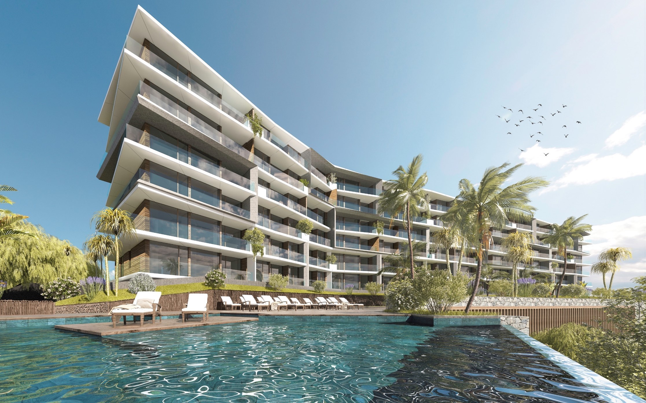 Destacam-se, naquele âmbito, a disponibilização de três piscinas infinity, amplos solários, uma cascata de relaxamento, jardins tropicais, fitness center, salas de entretenimento para os seus moradores e circuito pedonal interno, num conceito imobiliário inovador e que seguramente potenciará a colocação de um dos mais aguardados projetos imobiliários regionais.
