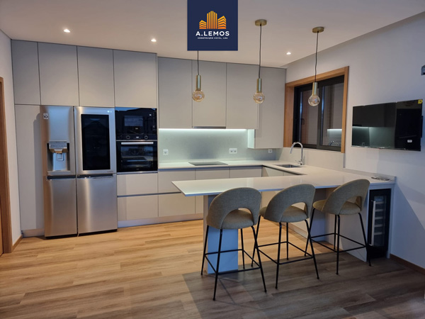 A relação com o cliente é uma marca distintiva da Alberto Lemos. “Tentamos, desde o orçamento, perceber exatamente o que o cliente quer. O objetivo é transformar o sonho em realidade”, sublinha Fábio. Para isso, o acompanhamento é diário: visitas ao início e ao fim de cada jornada de trabalho, planeamento conjunto com a equipa e abertura total ao cliente. “Os donos de obra são convidados a visitar sempre que quiserem. Há casos em que vêm todos os dias. Estão connosco do primeiro ao último momento. E sabem que podem contar com a nossa presença no terreno”, conta o entrevistado. A cultura interna da empresa também contribui para essa confiança. “Não há barreiras entre patrões e empregados. Trabalhamos todos com o mesmo objetivo: fazer bem. Aquilo que eu não faria para mim, não vou fazer para os outros”, afirma, reforçando o papel do coletivo: “Os que escolhem trabalhar connosco trazem dedicação e espírito de equipa, e são valorizados por isso”, salienta o Gerente.
